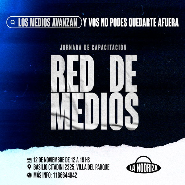 El sábado 12 de noviembre a partir de las 12 horas se llevará a cabo el Taller de Medios en Red en Basilio Citadini 2325, Villa del Parque, CABA. El mismo es organizado por La Nodriza, y contará con la participación de profesionales idóneos dispuestos a brindar herramientas que ayudarán a los participantes a incrementar sus habilidades.