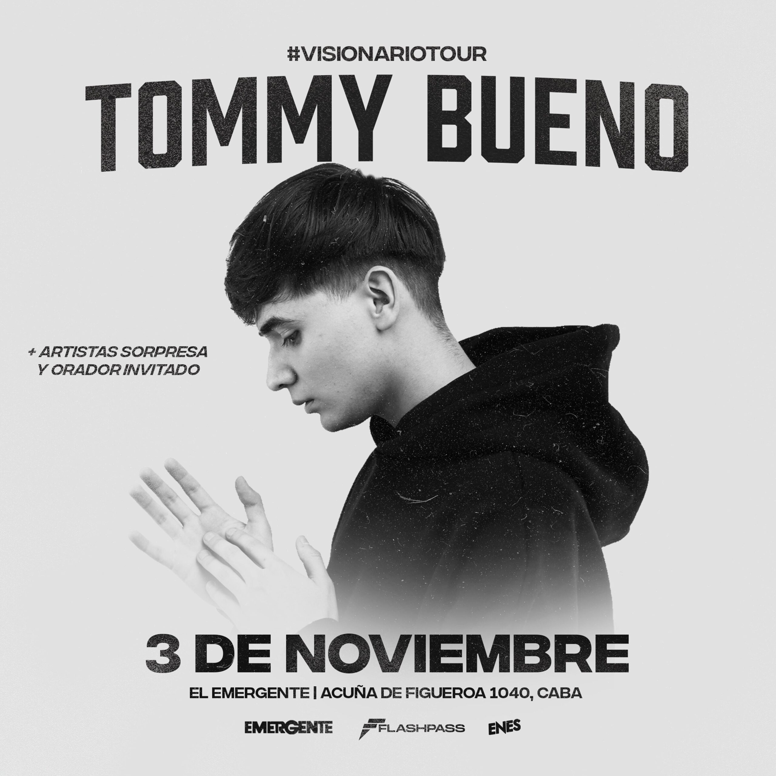 Share on X (Twitter) Share on FacebookTommy Bueno se prepara para ofrecer un show especial en Buenos Aires el próximo 3 de noviembre en El Emergente de Almagro. Será una noche única con un repertorio que incluirá un recorrido por su carrera, desde canciones clásicas a estrenos de temas inéditos. Todo con la participación de artistas invitados que sumarán aún más emoción al evento. Amante de la ciudad de Buenos Aires, el joven artista está cumpliendo un sueño al realizar su primer show propio en la ciudad porteña. Después de haber compartido escenario en diversos festivales y eventos, llegar con un show único en esta ciudad tiene un significado muy especial para él. Conectará tanto con quienes ya siguen su música como con aquellos que disfrutan de la música urbana con un mensaje auténtico. Las entradas están disponibles en FlashPass, y se recomienda adquirirlas pronto, ya que se espera un gran número de asistentes. Tomás Ezequiel Bueno, conocido artísticamente como Tommy Bueno, es un rapero, cantante, músico y productor musical argentino. Nació en la Ciudad de Buenos Aires, en el barrio porteño de Parque Patricios el 14 de abril de 2004. Criado en la Zona Sur de Buenos Aires, estudió producción musical en la Universidad Nacional de La Plata, también en el Conservatorio Superior de Música Ástor Piazzolla y actualmente desarrolla sus estudios en el Centro de Entrenamiento Ministerial Instituto Misión de Mariano Sennewald. Pasó por importantes escenarios como el Teatro Gran Rivadavia, Tecnópolis y en tan solo un año tuvo tres presentaciones en el mítico Estadio Luna Park de Buenos Aires. Participó en la última edición de Expolit en la República Dominicana, compartiendo escenario junto a grandes exponentes internacionales del género urbano cristiano. En su paso por el Caribe, también tuvo una presentación en el Centro Mundial de Restauración Familiar del Apóstol Raymond Telfort y la pastora Nancy Amancio. En 2023 fue ganador de los premios CC Awards en la terna de “Mejor Artista de Trap Cristiano”. Fue considerado en los Latin Grammys y nominado a los premios Praise Music de Colombia. Este último año llegó a más de 2 millones de reproducciones en las plataformas digitales, convirtiéndose en el artista urbano cristiano de Argentina más escuchado en el mundo. Navegación de entradas Concé los ganadores de los Dove Awards Montesanto lleva su “Fiesta en el Desierto” a Zárate junto a “En Un Espíritu”